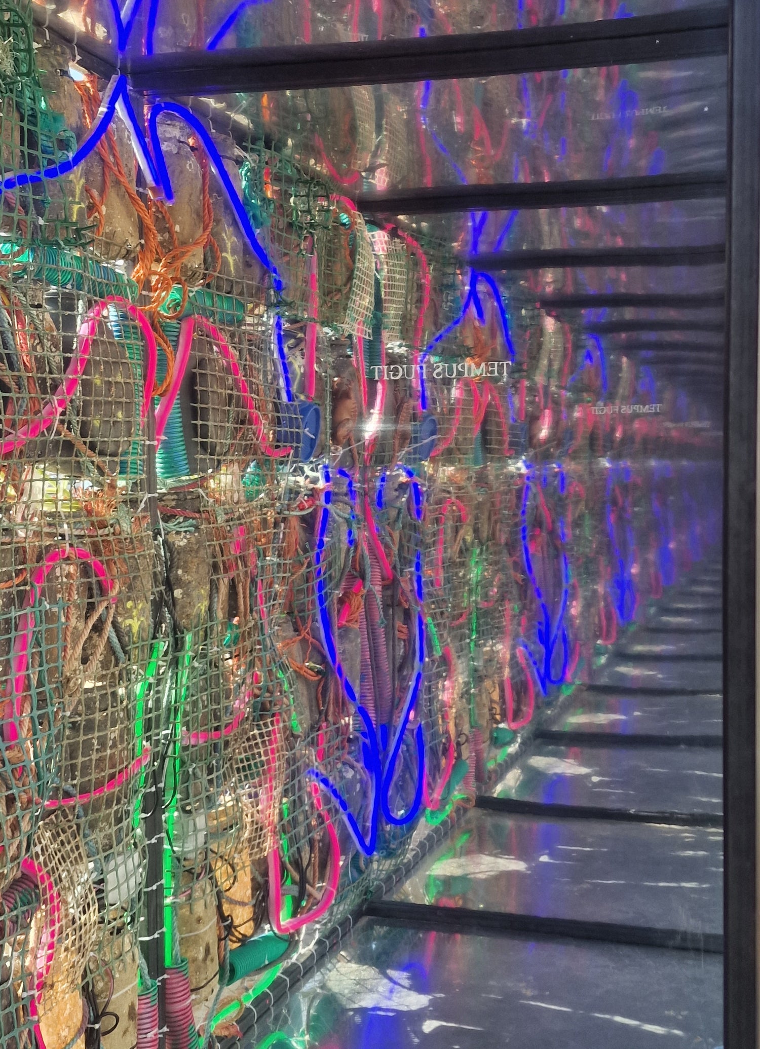 Conceived by the artist Fiumani , the work establishes a strong contrast between appearance and reality: the mirrored exterior reflects the beauty of the surrounding environment, while the interior reveals marine debris multiplied by mirrors, creating an infinite visual effect. This duality symbolizes how we idealize the ocean, often ignoring the true extent of pollution.